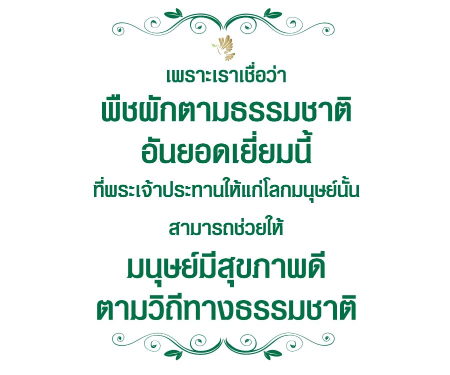 พันธกิจของบริษัท ช่วยผู้คนในโลกนี้ให้มีสุขภาพที่ดีขึ้นให้มากที่สุดเท่าที่จะมากได้เพราะเราเชื่อว่าพลังจากธรรมชาติที่พระเจ้าทรงสร้างมาสามารถช่วยปกป้องมนุษย์ให้ห่างไกลจากโรคร้ายได้