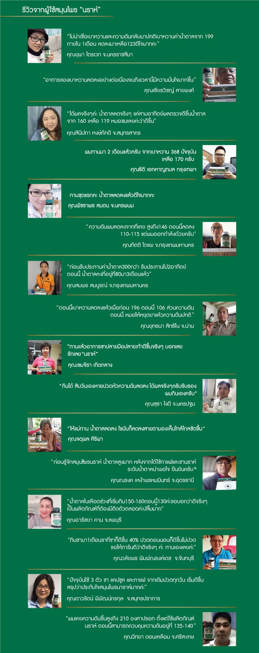 ความประทับใจผู้ใช้ผลิตภัณฑ์สมุนไพร "นราห์"